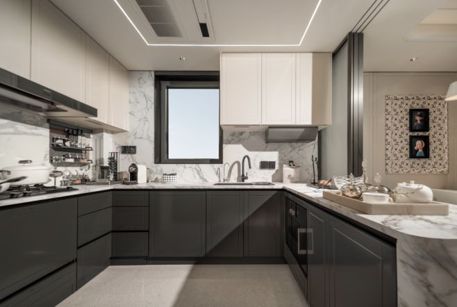 而U型厨房的流畅动线,配上嘉格纳全系厨电,加上无处不在的智慧收纳,让生活回归井然有序的优雅。